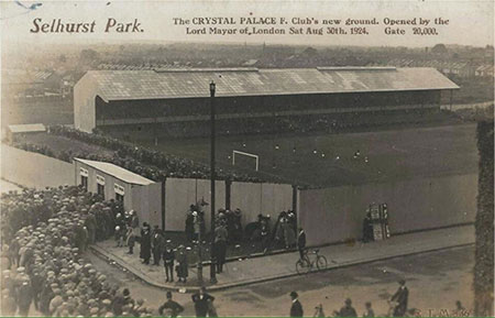 In 1924 Crystal Palace FC moved into their new Selhurst Park Stadium. It was designed by Archibald Leitch (1865-1939). The club was founded in 1861 and originally played in Crystal Palace Exhibition Park (leaving in 1915).