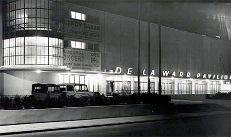 In 1932 Herbrand Brassey Sackville, 9th Earl De La Warr (1900-1976) became the (socialist) Mayor of Bexhill. The Earl proposed building an entertainment hall on the former coastguard site behind the Colonnade. A competition was held to select the architects, which was won by Serge Chermayeff (1900-1996) & Erich Mendelsohn (1887-1953). Work began in January 1935 and it was opened by the Duke and Duchess of York on 12 December 1935. The above photo is of the opening night.